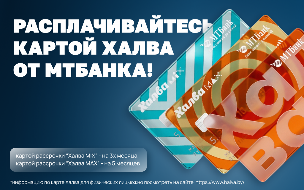 Теперь в магазинах {наименование магазина или сети, можно указать адрес и т.д..} можно расплачиваться картой Халва от МТБанка!
